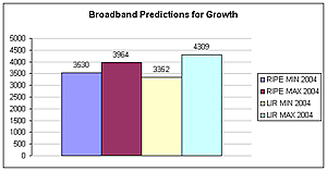The RIPE NCC is currently suggesting that the broadband of growth for 2004 will be between 3530 and 3964 LIRs.
